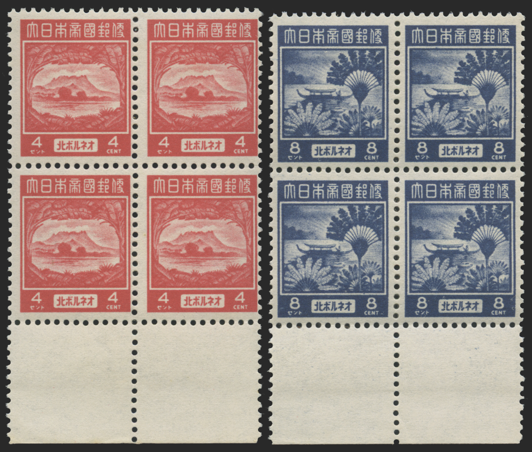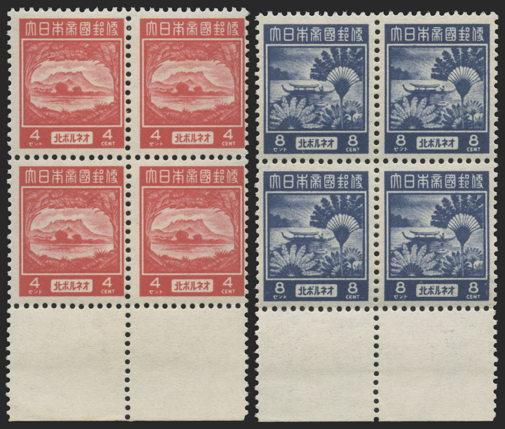 North Borneo Japanese Occupation 1943 4c red and 8c blue, SGJ18/19