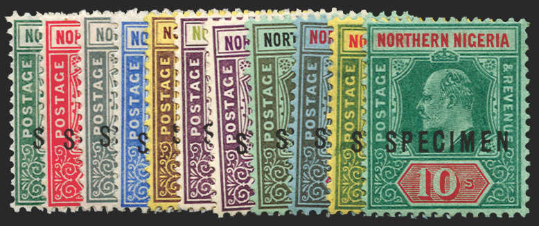 Northern Nigeria 1910-11 set of 11 to 10s, overprinted 'SPECIMEN', watermark MCA, SG28s/39s.