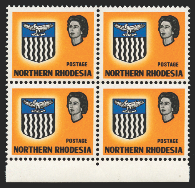 Northern Rhodesia 1963 3d yellow, 'Coat of Arms', error VALUE AND ORANGE (EAGLE) OMITTED, SG78b.