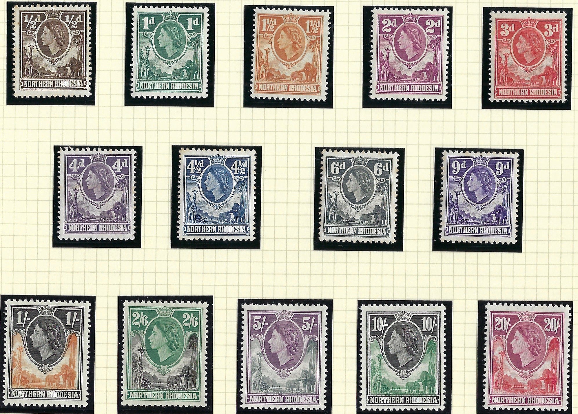 Northern Rhodesia Queen Elizabeth II 1953 (15 Sept) ½d to 20s rose-red and rose-purple set of 14, SG61/74.