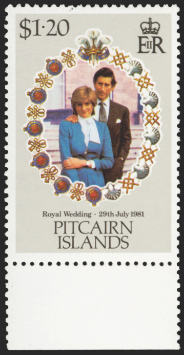 Pitcairn Islands 1981 Royal Wedding of Prince Charles and Princess Diana $1.20, variety watermark inverted, SG221w.