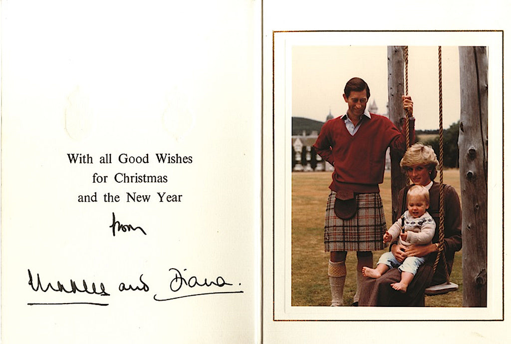 - An official British Royal Christmas card signed and inscribed by Prince Charles and Princess Diana in 1983.