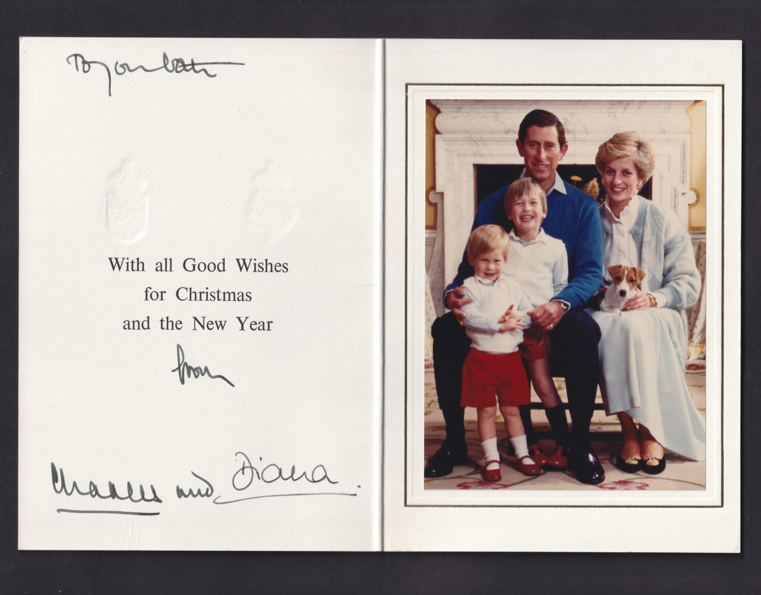 - A 1986 Royal Christmas card signed by Charles and Diana.