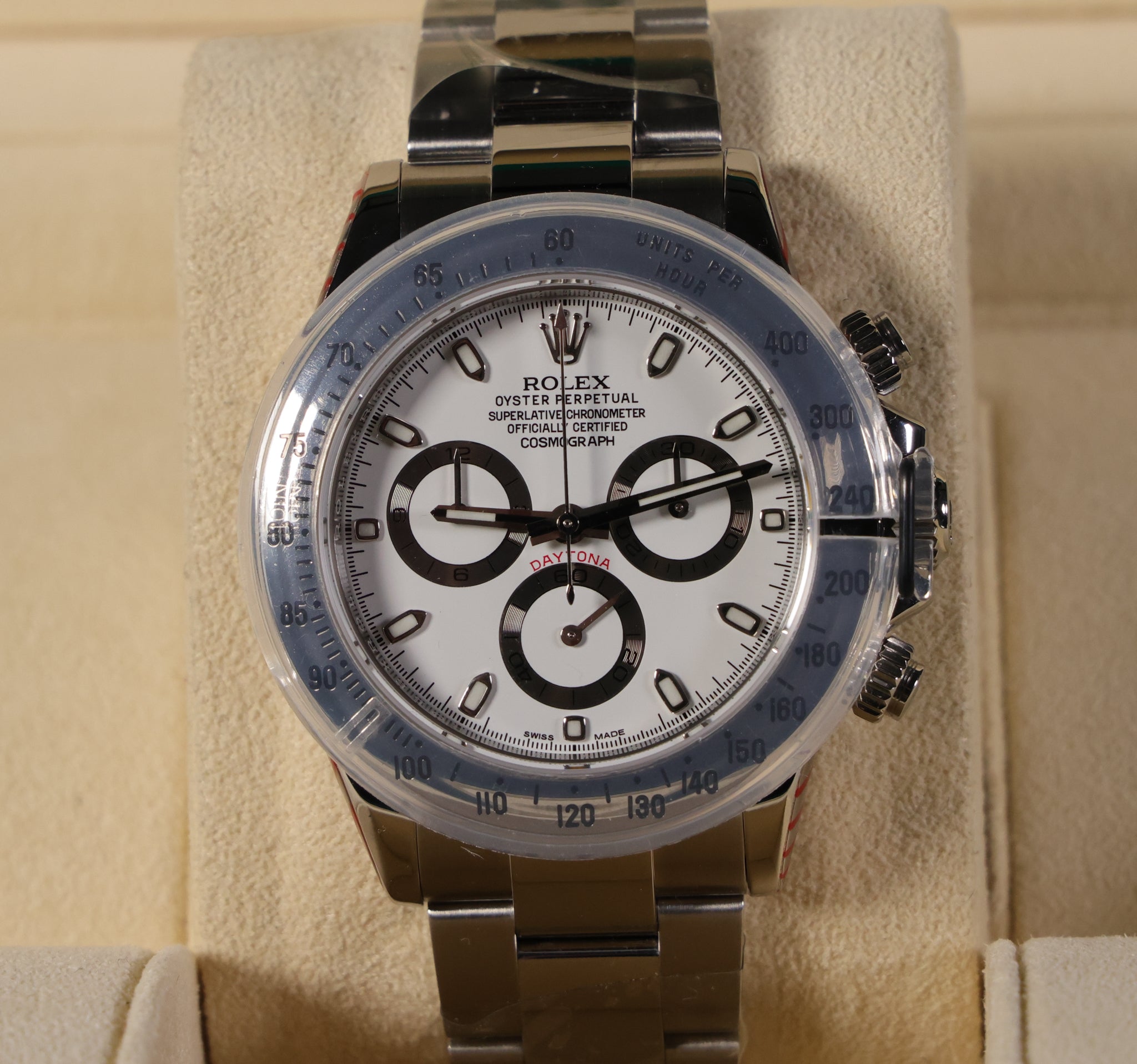 A superb Rolex Daytona Ref. 116520 white dial, with scarce "APH" dial error.