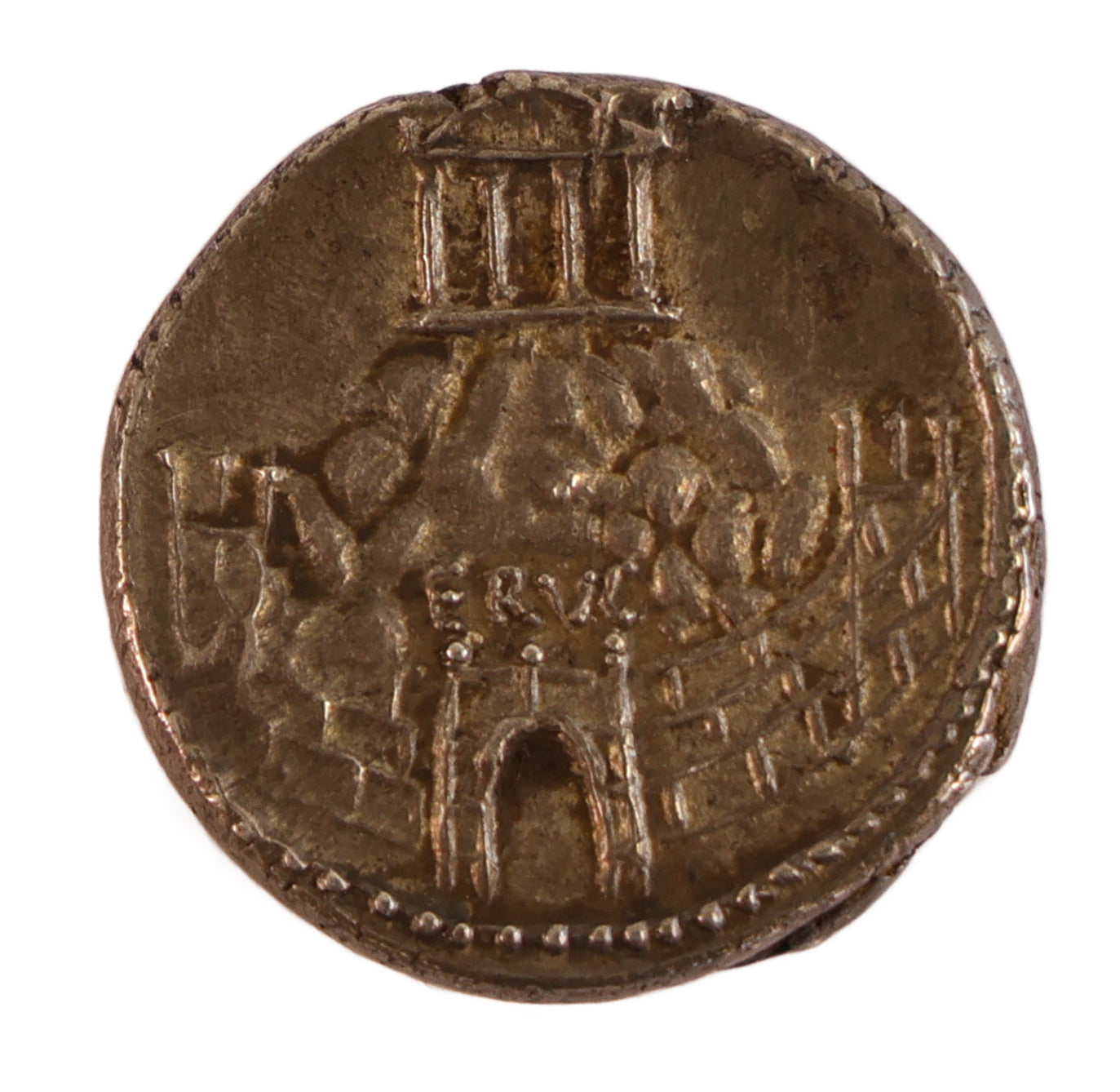 Very attractive Roman Republican denarius and rare in this condition. The obverse is off-centre but as the only missing legend is ‘SC’ it really does not detract at all. The reverse was traditionally identified with the sanctuary of Venus at Eryx in Sicily but it is now thought to represent its counterpart near the Colline Gate where Sulla took control of Rome in 82 BC, in which case the walls are those of Rome.