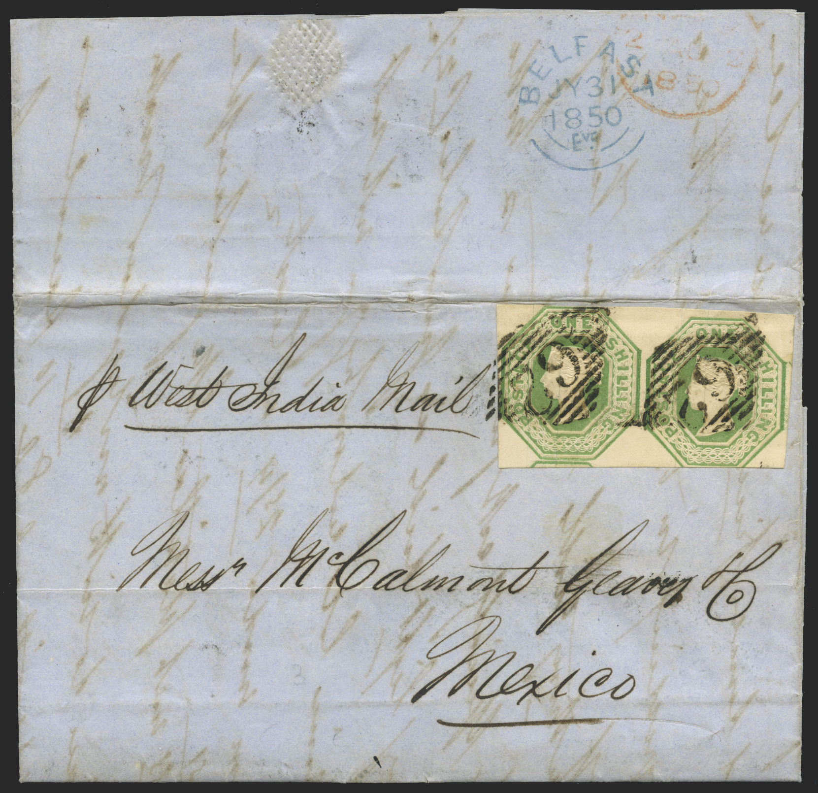 Great Britain 1850 overseas mail, Belfast to Mexico, SG55.