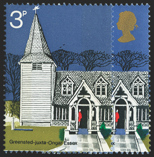 Great Britain 1972 3p Village Churches (St Andrew's, Greensted-juxta-Ongar, Essex) error, SG904a.