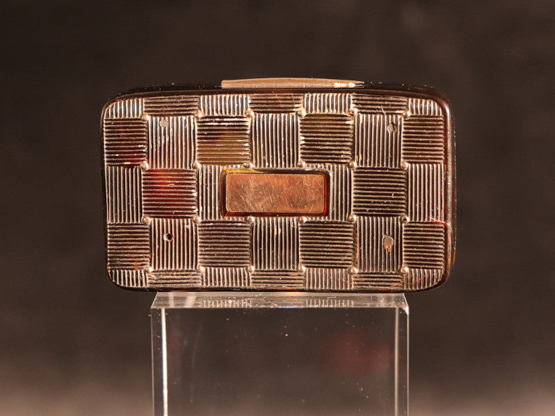 The lid is decorated with a chequerboard pattern line detail with gold coloured central cartouche.