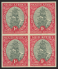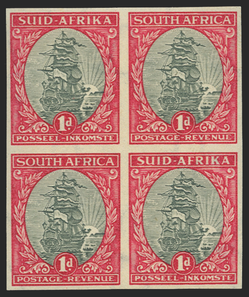 South Africa 1933-48 1d grey and carmine "SUID-AFRIKA" hyphenated, imperforate block of 4, SG56a.