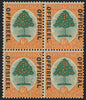 South Africa 1929-31 6d green and orange Official, Pretoria typo printing, type O2 overprint, block of 4, upper right (Afrikaans) stamp showing variety "Stop after "OFFISIEEL", SGO9/b.