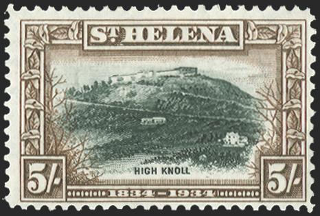 St Helena 1934 Centenary 5s black and chocolate, SG122.