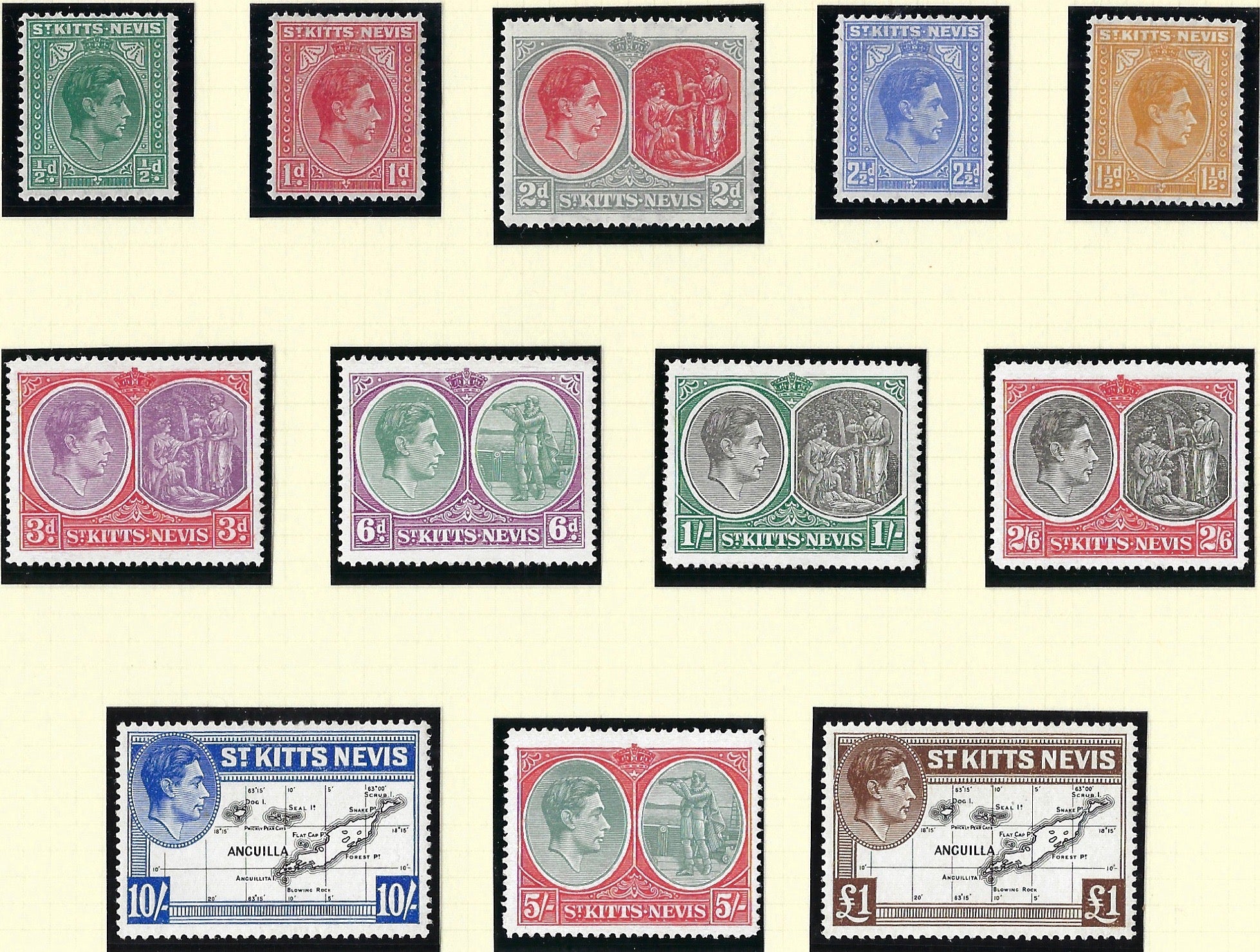 St. Kitts-Nevis 1938-50 1/2d to £1 black and brown, SG68a/77f
