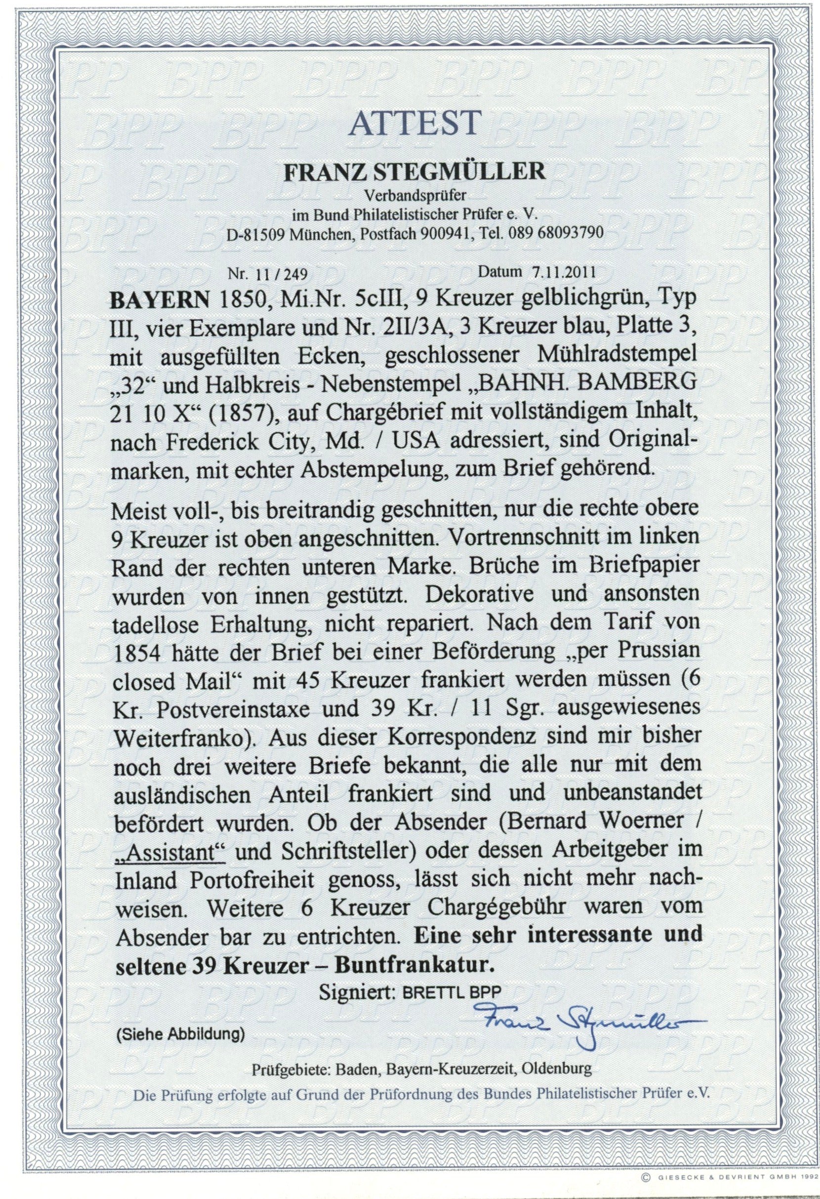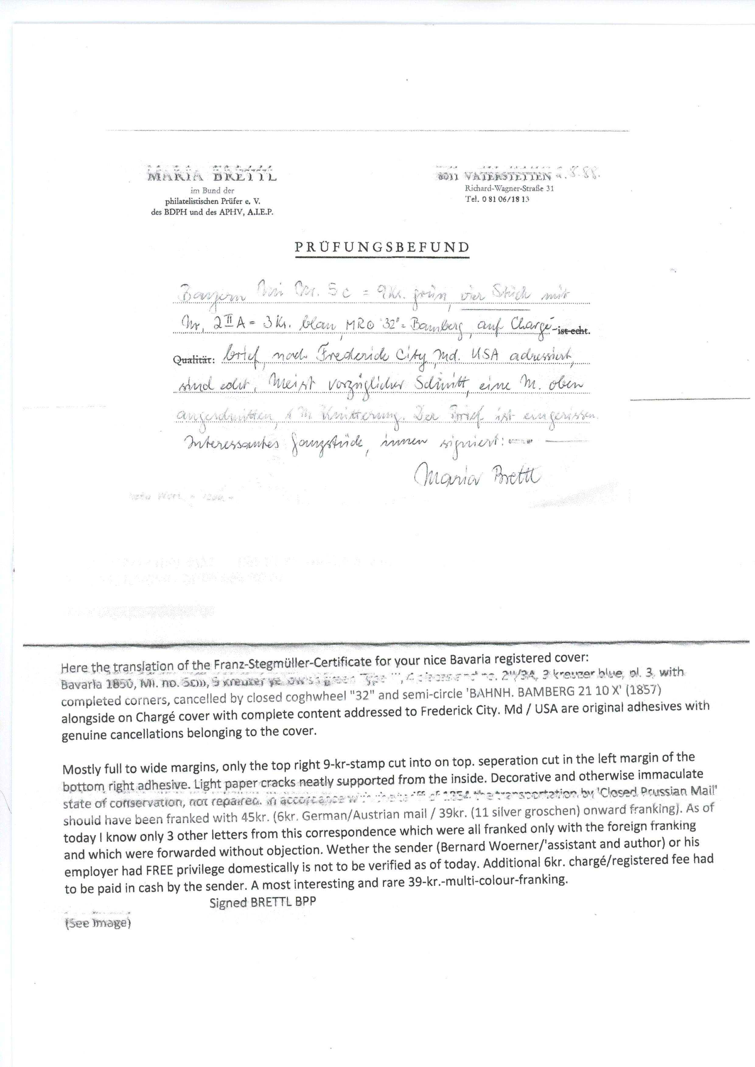 Bavaria 1857 letter from Bamberg, Bavaria to Frederick City, Maryland, US