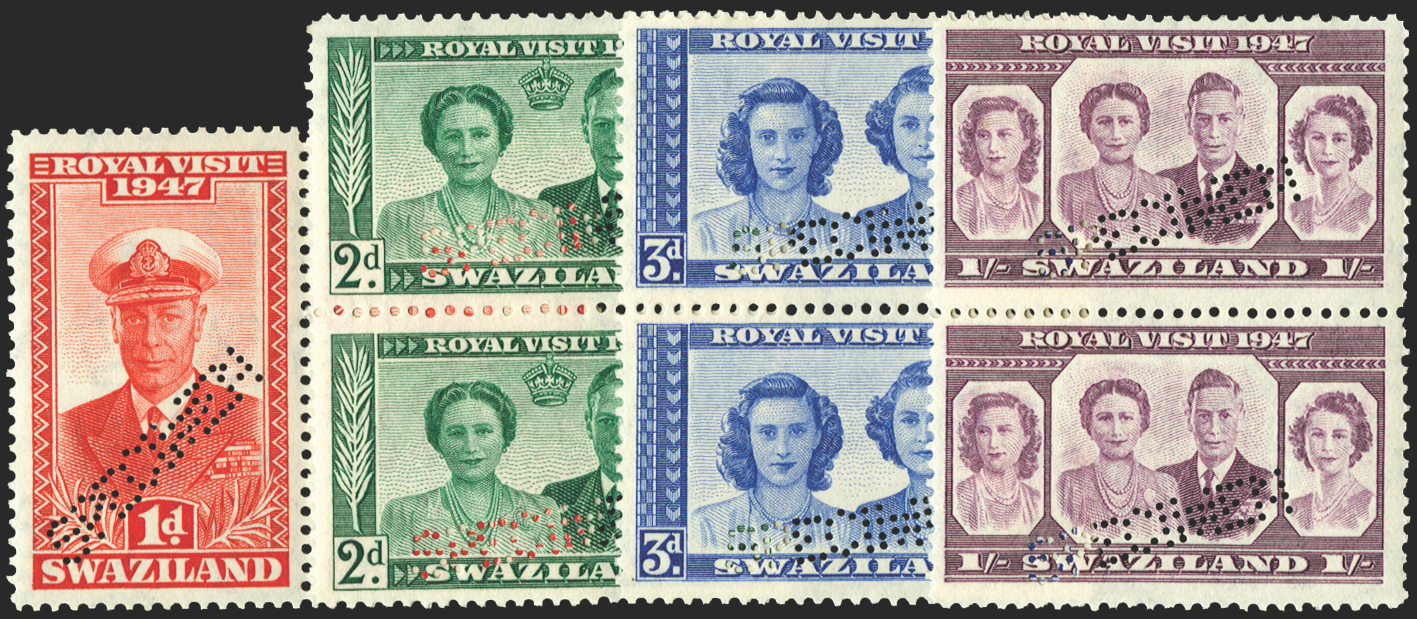 Swaziland 1947 Royal Visit set of 4 to 1s, perforated 'SPECIMEN' (type W9), SG42/5s.