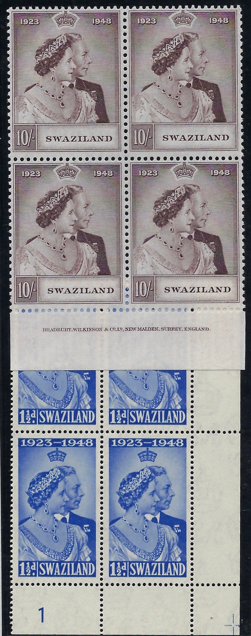 Swaziland 1948 Royal Silver Wedding set in blocks of 4 SG46/7