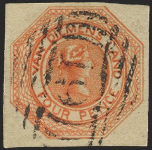 Australia Tasmania 1853-55 4d orange, plate II, position 17 on the sheet, SG10.