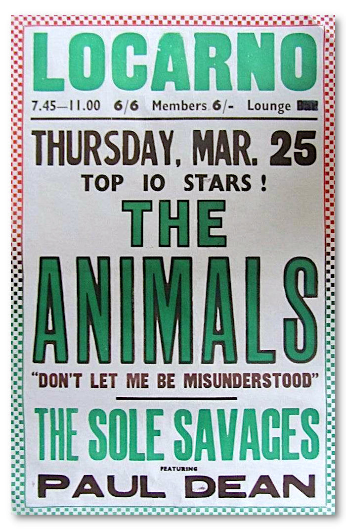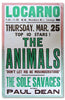 - A rare original 1965 poster advertising the Animals at the Locarno ballroom in Swindon, UK.