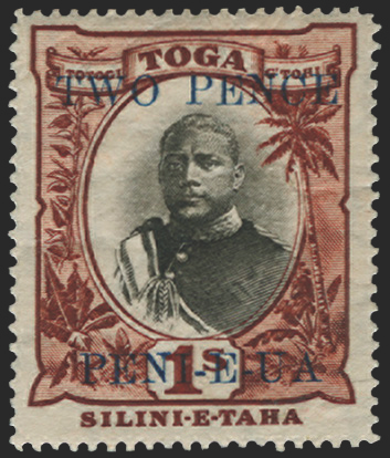 Tonga 1923-4 2d on 1s black and red-brown, SG67