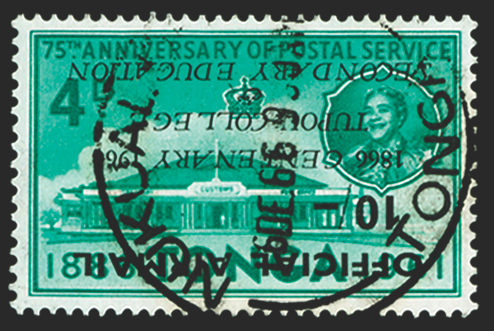 Tonga 1966 (18 June) Tupou College 10s on 4d blue-green Official, ERROR SURCHARGE INVERTED, SGO19a.