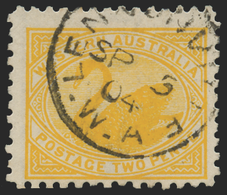 Western Australia 1902-11 2d yellow, variety with watermark V over crown UPRIGHT, perforations 11 line, SG130a.