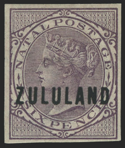 A very rare imprimatur of the first stamps used by Zululand on becoming a Crown Colony, which were overprinted stamps from Natal.